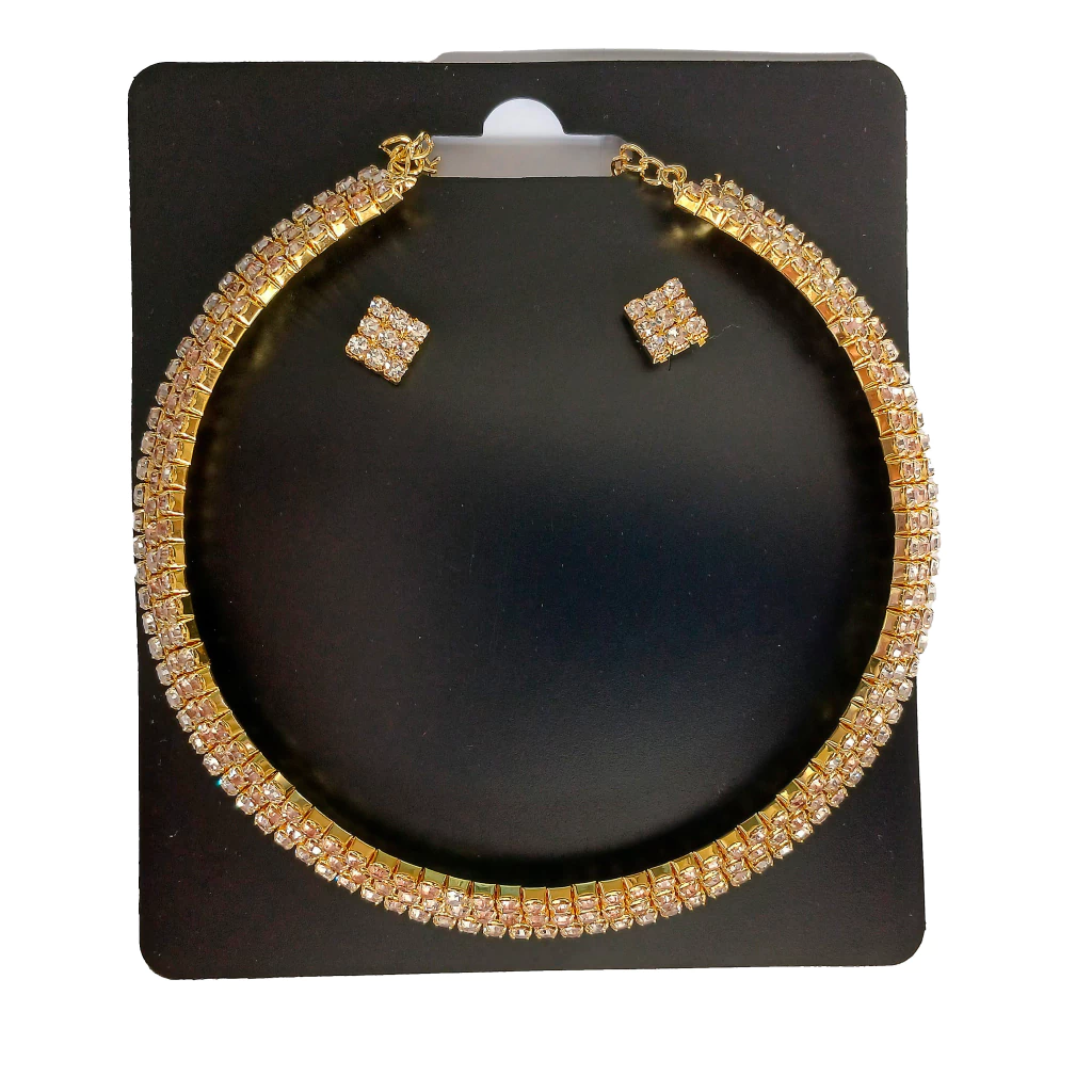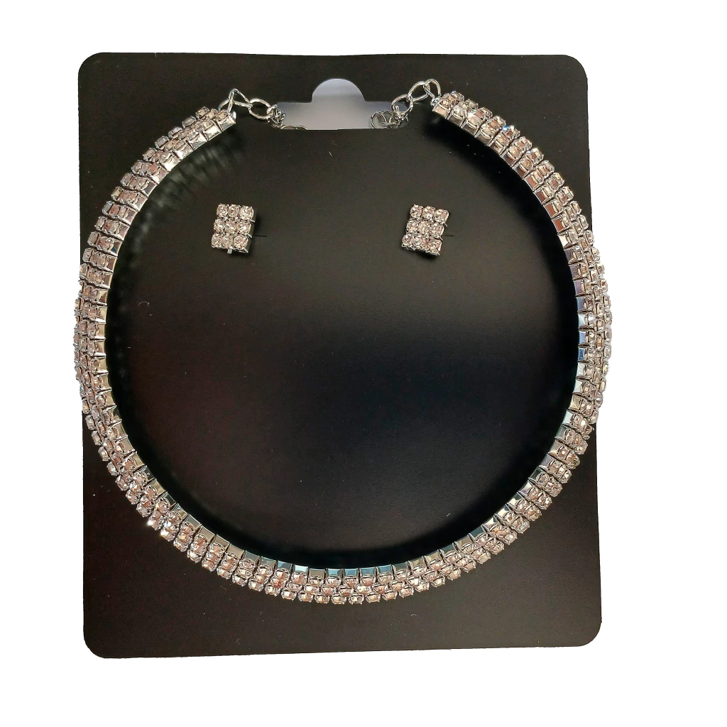 Conjunto de colar e brincos feminino ideal para festas, formaturas, casamentos, eventos e ocasiões especiais.
