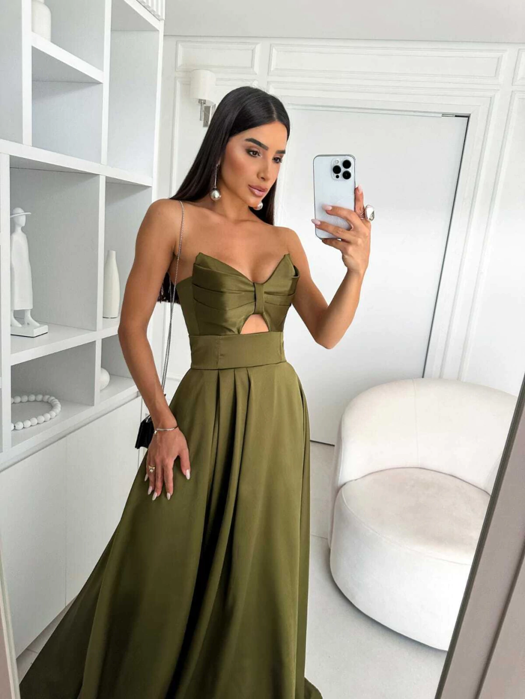 Vestido Madrinha Formatura Convidadas Acetinado Laço No Busto Fenda em Tecido Acetinado